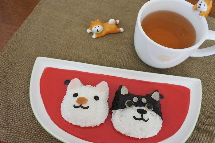赤柴、黒柴、白柴と作ってみましたが、一番手こずったのは黒柴さんです。海苔の位置とか結構難しかったです。