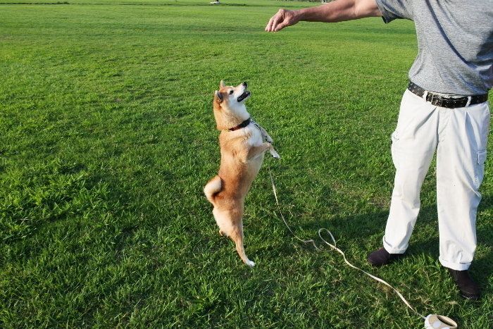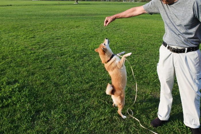 だけど、こんな風におやつに釣られて立つのは、やっぱり大好きなヤマトパパだから。「ほら!マロンここまでジャンプして!頑張れ!」と言われて頑張っているマロたんです。