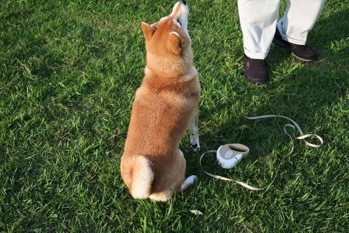なんてマロたんのお顔をまじまじ眺めている時、お友達のヤマトくんに会えました。猛暑だった期間は、お互い涼しい時間や場所を求めていたので、お散歩中まったく会うことがなかったのですが、9月になってやっといつものお散歩コースで再会。相変わらず可愛い!