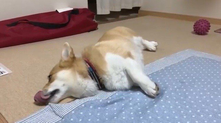 コーギー陽菜ちゃんの、ちょっと豪快!?に口周りをふきふき