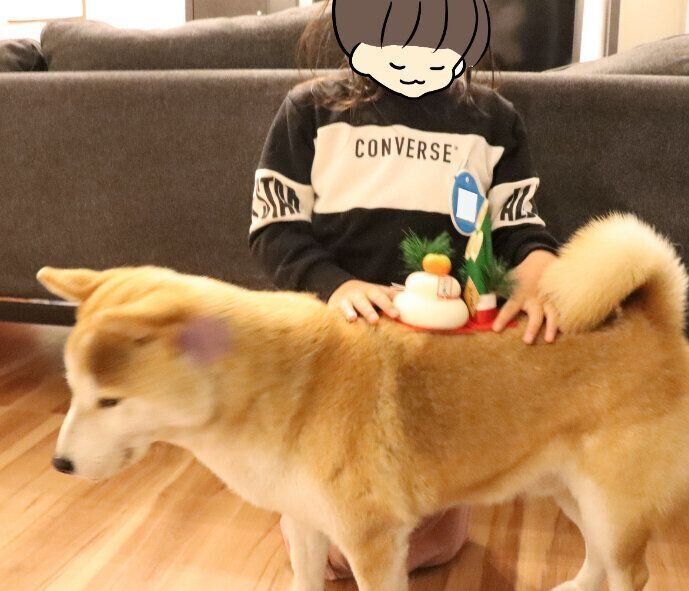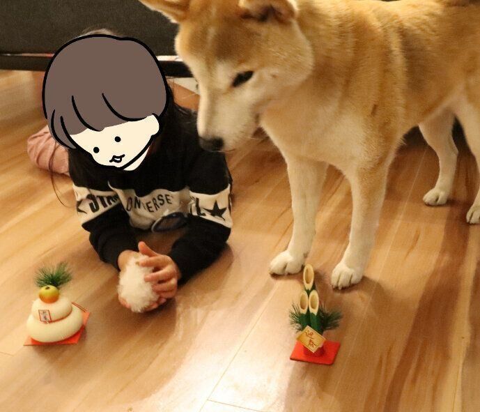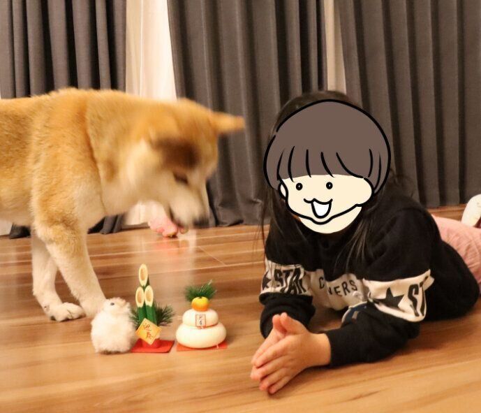 門松と鏡餅の置物も並べてお正月らしさを演出してみたのですが…この置物が気になるようです。