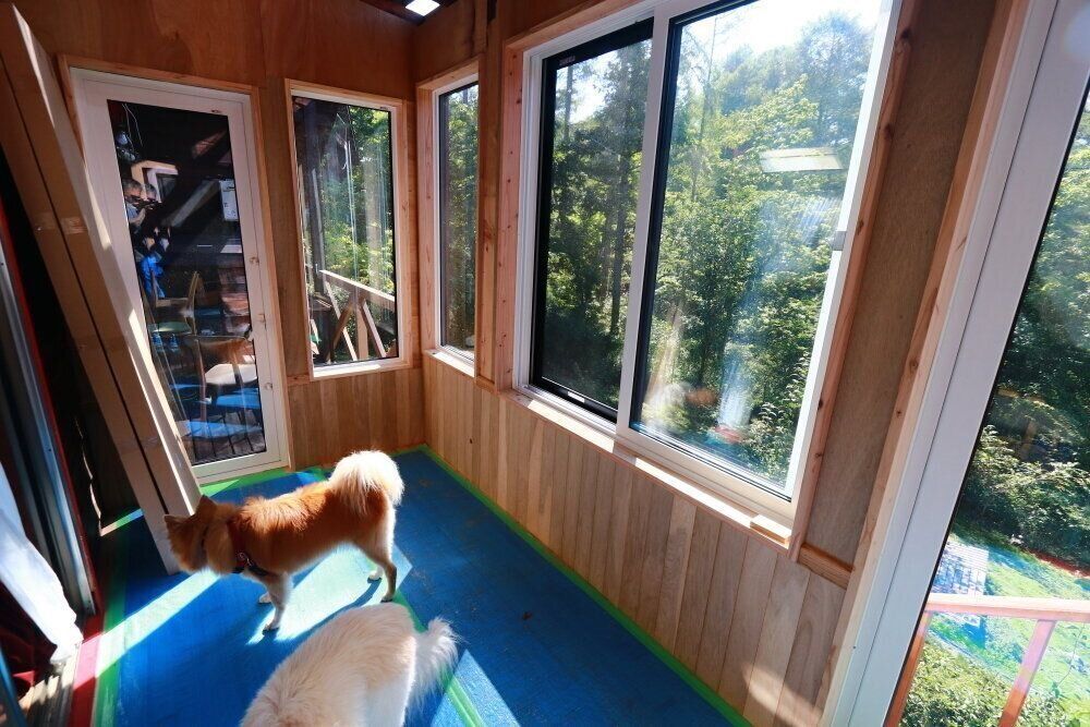 キッチンや風呂場はできなかったが、山の家にはサンルームができたりした。これも最初からサンルームが欲しかったわけではなく、昨年作った小さな仕事部屋の天井の一部がテラスにかかっており、ゴミが落ちると掃除できないため大工さんとテラスに床でも貼ろうかと相談しているときに、ならサンルームにしようとなっただけである。これも移住を意識してやったことではない。けれど、完成したサンルームは冬でも晴れると暑いくらいなので、これもやっておいてよかった。