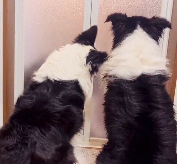 お風呂中の飼い主を「出待ち」する3頭の犬 ドアの前で仲良く並んで待つ姿が健気で愛おしい!