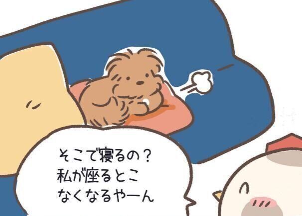 「あれー( ´∀`)今日はそっちで寝るの?私が座る場所なくなっちゃうなー笑」