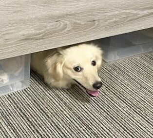 @monaka_0507さんの愛犬・とろろくん(取材当時9カ月)です。まるでご褒美をもらうときのようにキラキラした瞳をしていますが、これは「お風呂の追い炊き」が完了したことを報告しに来た笑顔なのだとか。