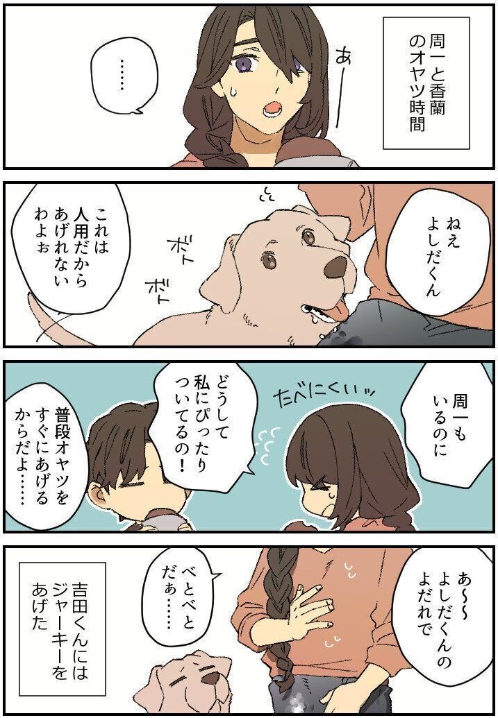 香蘭相手なら、ちょっと強請ればおやつもらえると理解している吉田くんに迷いなし。