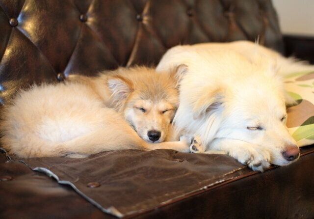 そんな大吉のところへ福助が来たわけだが、2才の大吉と数カ月の福助では体格も全然違った。当初の福助は人間不信で抱き上げることさえ困難だったが、なぜか大吉にはすぐ心を開き、いつも後を付いて回っていた。