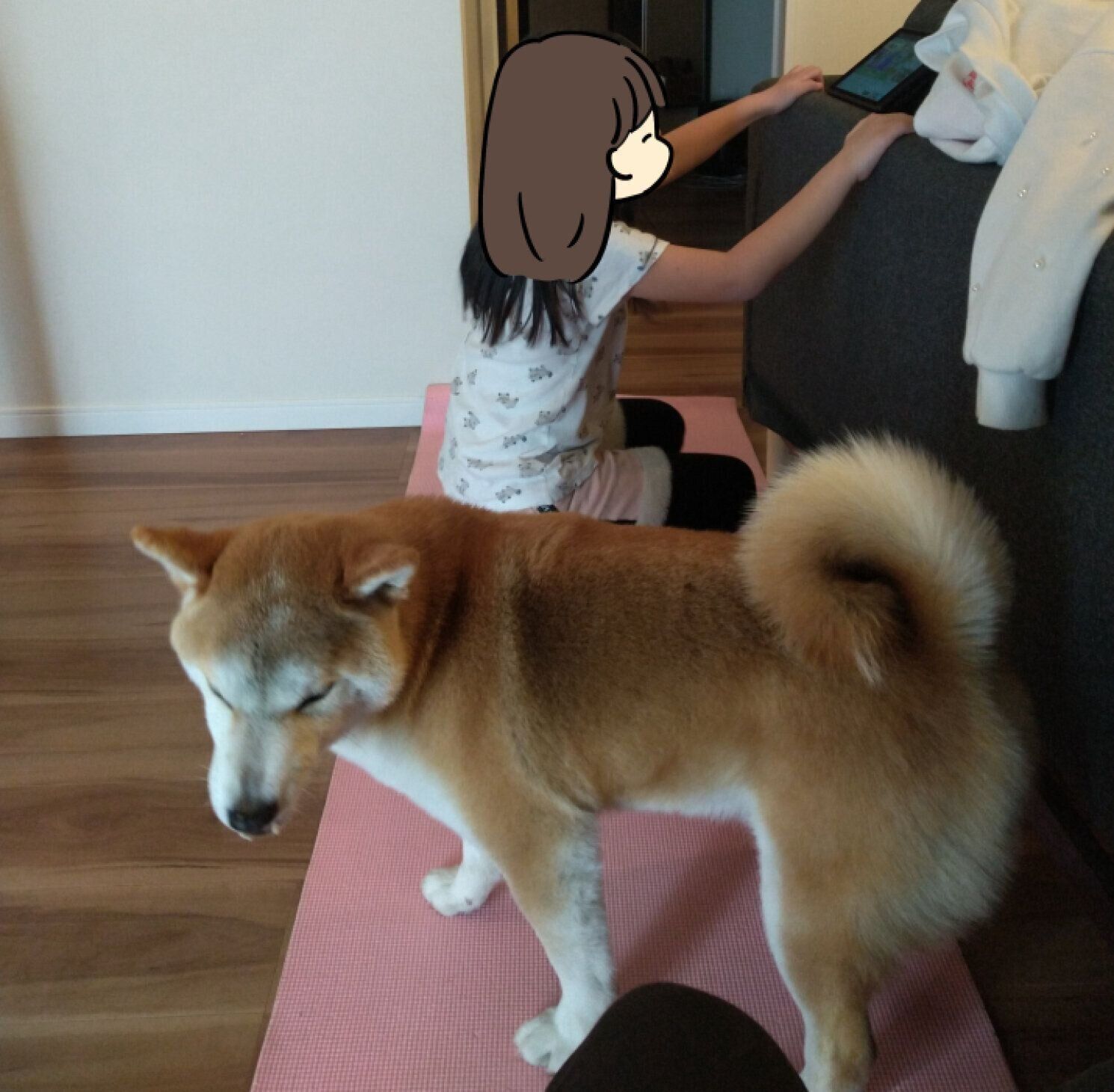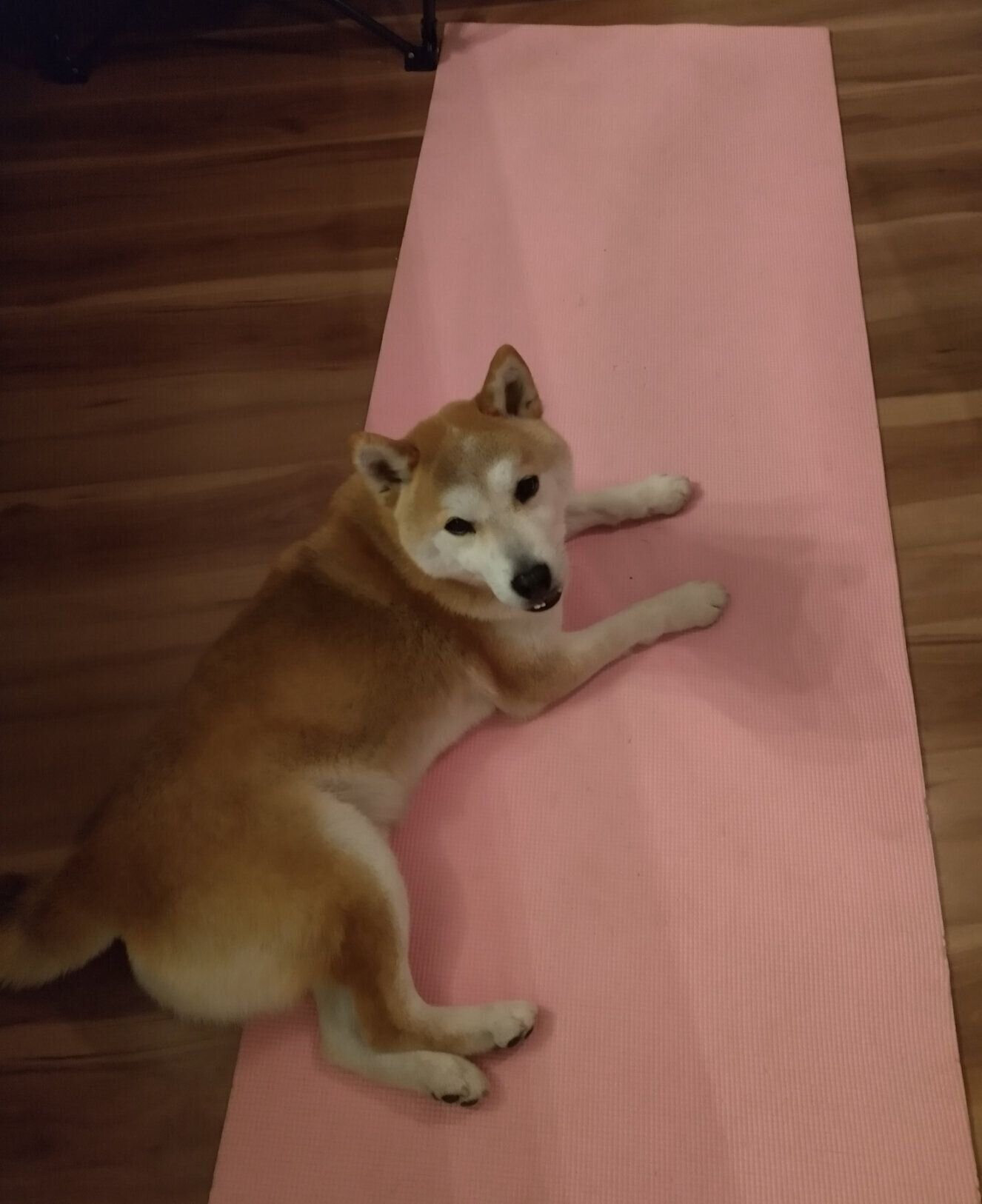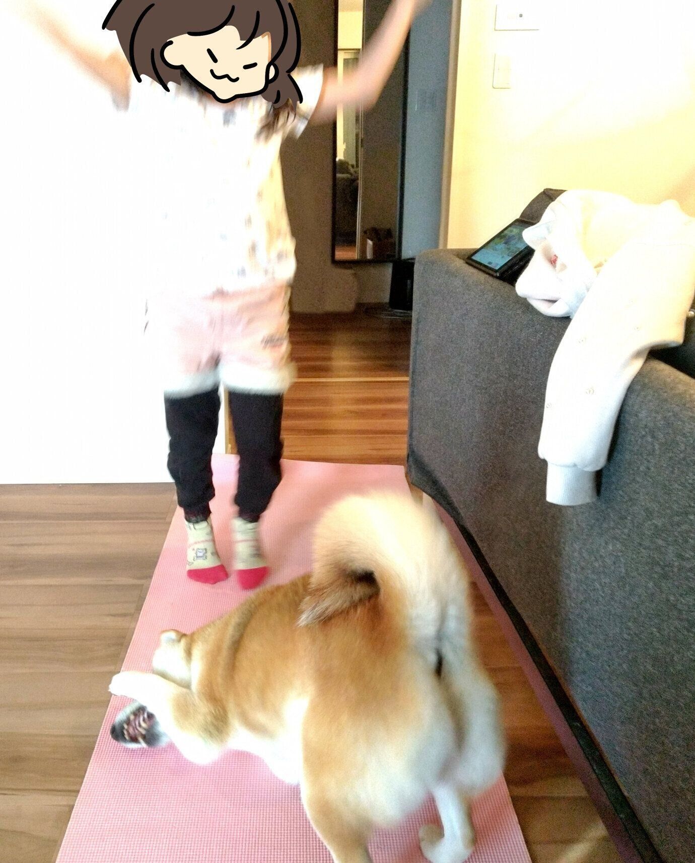 次の日の朝もマットに直行するタロさんと娘。昨日のことを忘れずにちゃんと半分づつマットを使っています。