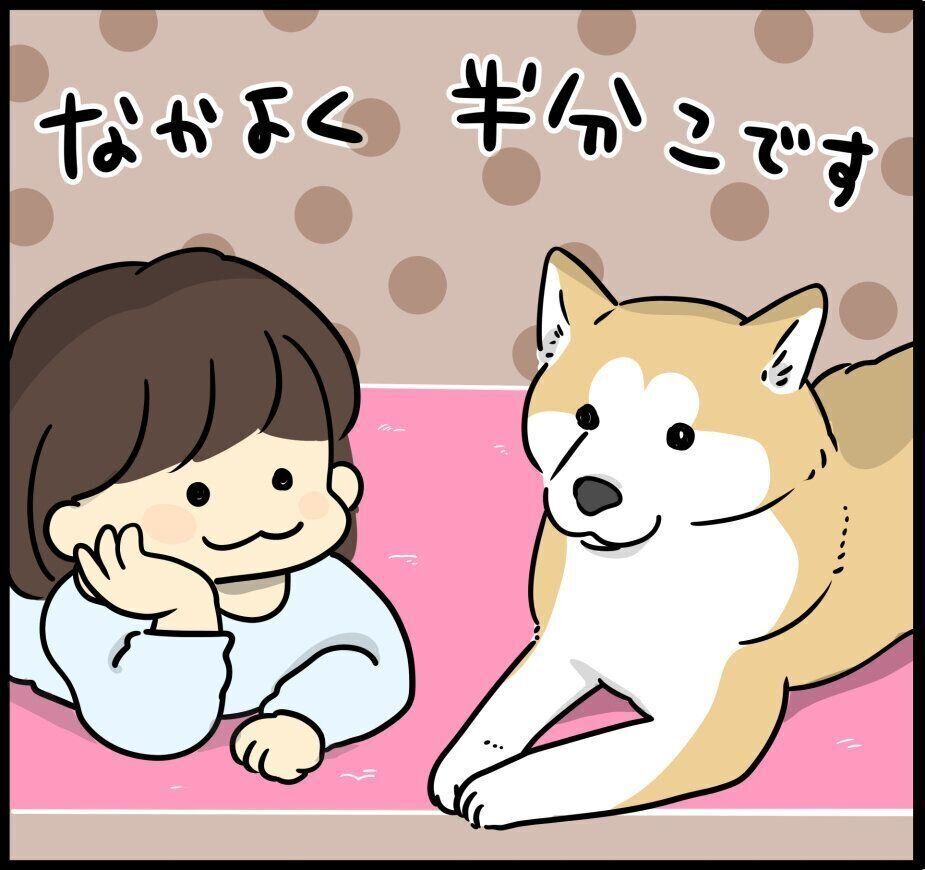 パパが好きすぎる一人と一匹。おさがりのマットを独占したがる柴犬タロさんと娘|連載「モフモフ柴とプニプニ娘」第256話