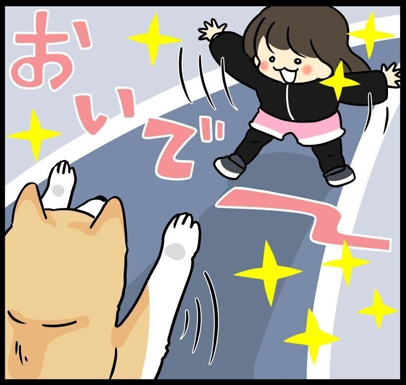 「柴距離」のタロさんを受け止めたい!娘の勢い大作戦|連載「モフモフ柴とプニプニ娘」第257話