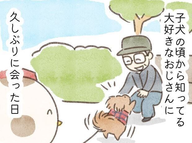 おじさんがどこか得意げなのは、てんすけからの好感度が高いから?|連載「こぐま犬てんすけ」vol.251