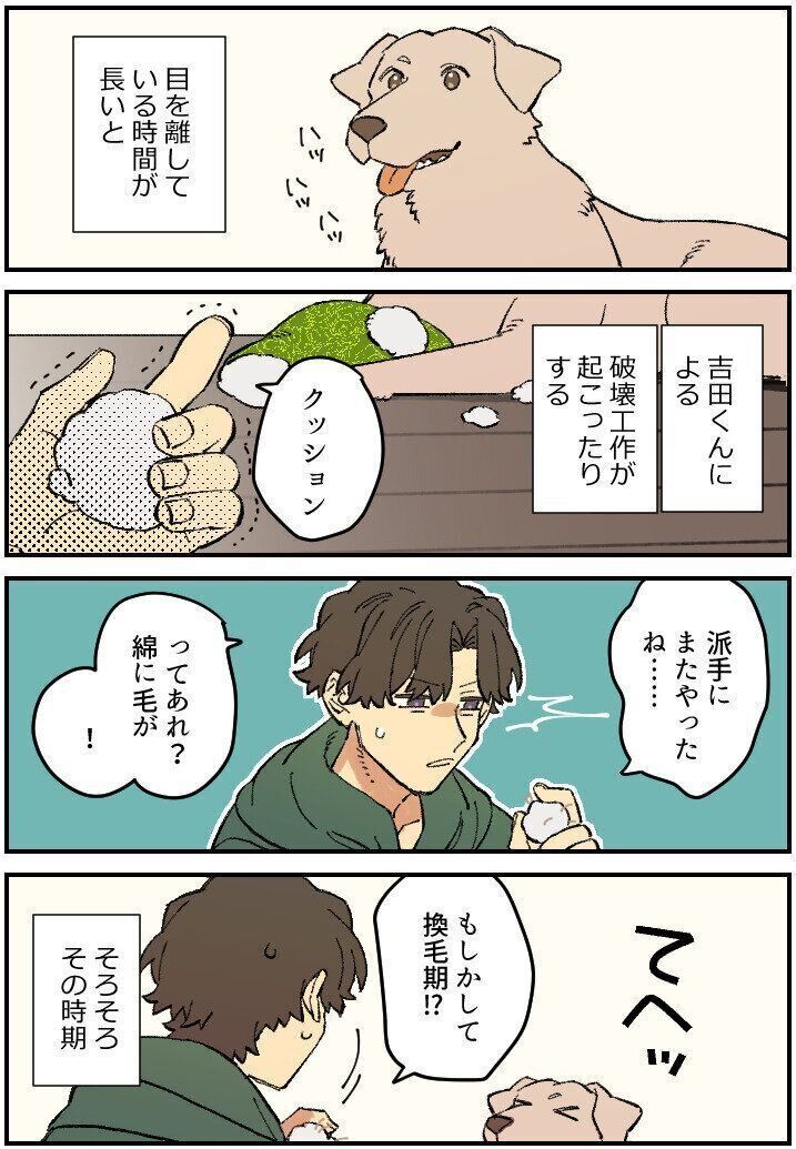 辺りに舞い上がる綿と、吉田くんの金色の毛。