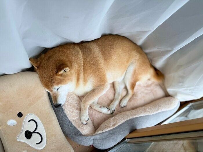 休日の朝、パパさんに「ナデナデして」と甘える柴犬・あさむらさん。手を止めると前足で“ちょんちょん”と催促。スーツ姿のときは近づかないため、休日だと理解している様子です。満足すると隣で一緒に昼寝するあさむらさんの姿にほっこり!