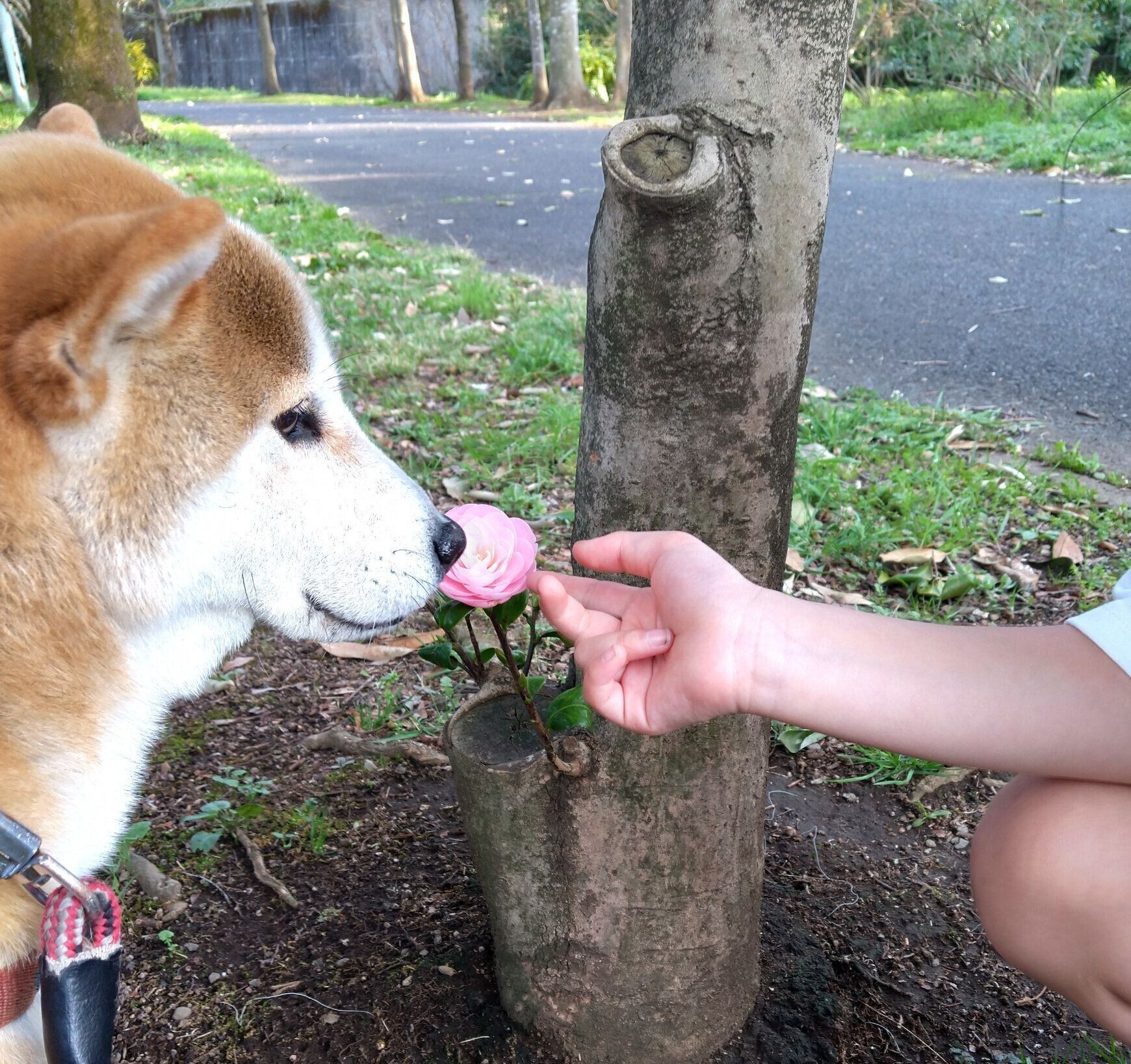 ちょうどタロさんの顔の位置くらいに花があったので、花とタロさんの顔が近い写真が撮れました。