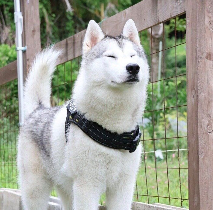 「眉毛」があって困ったような顔に見えるハスキー子犬 2才になって、キリッとした顔のイケメン犬に!