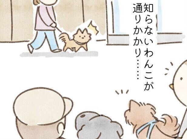 そのそそくさとした様子が、大中小揃った犬集団を見て「やば…」と思ったかのようでした。