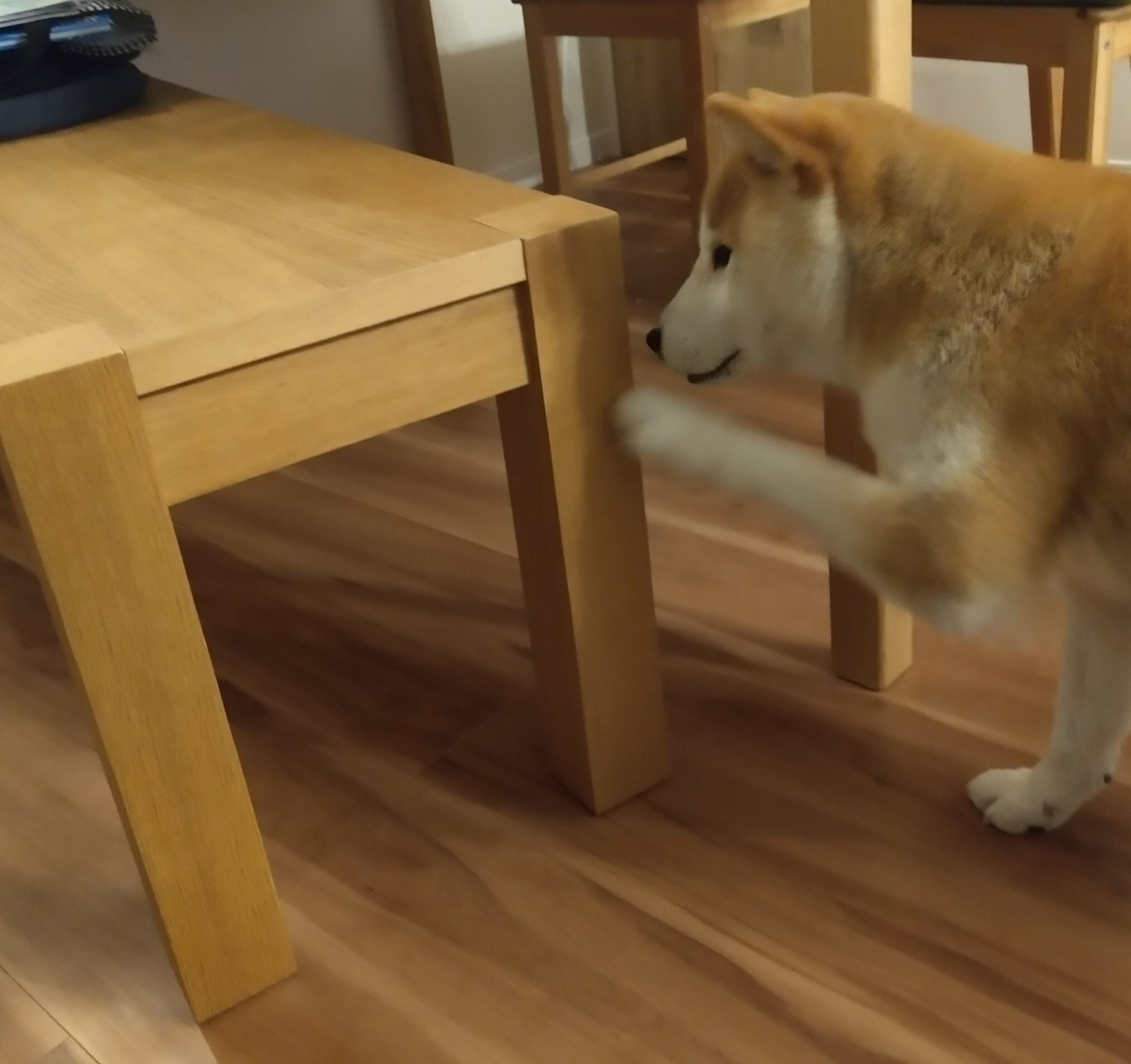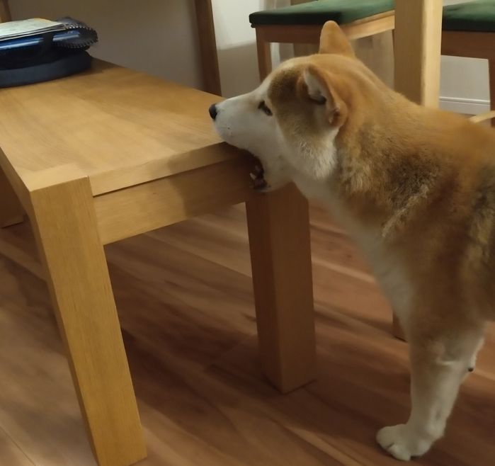 イライラしたときは椅子に向かって引っかき攻撃をして最後はガブリと椅子に噛みつきます。