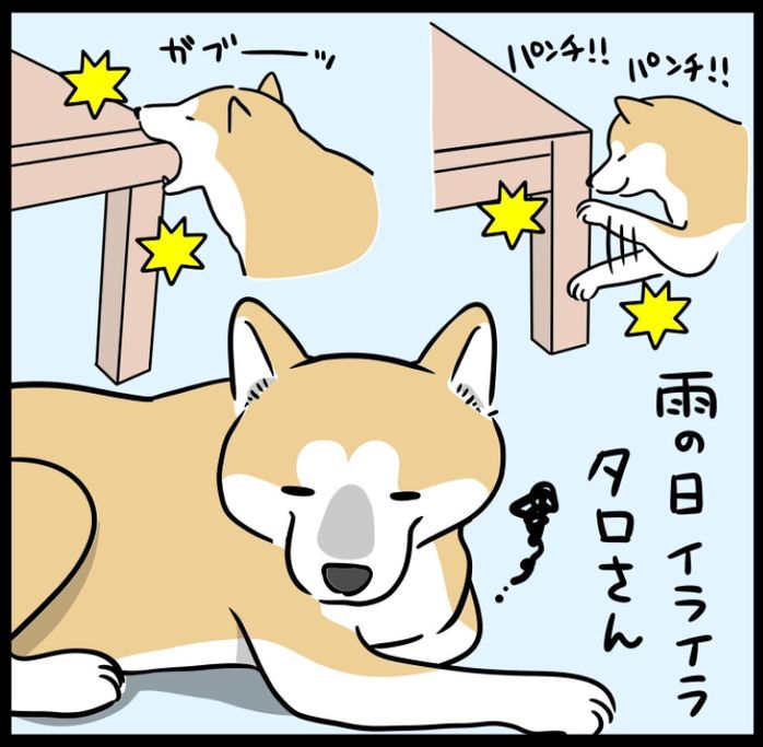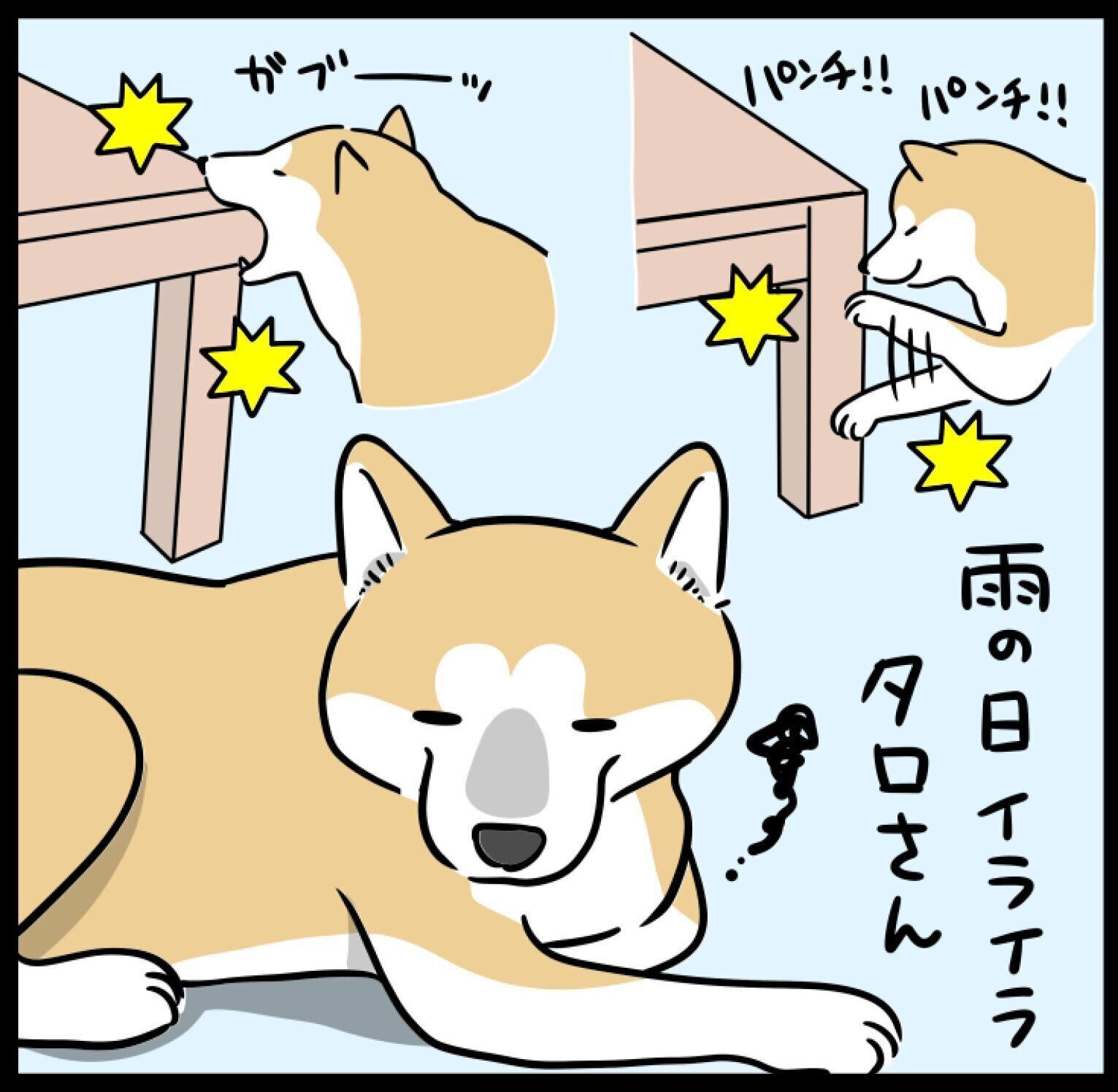 雨への不満で、イライラアピールをしてしまう柴犬タロさん|連載「モフモフ柴とプニプニ娘」第268話
