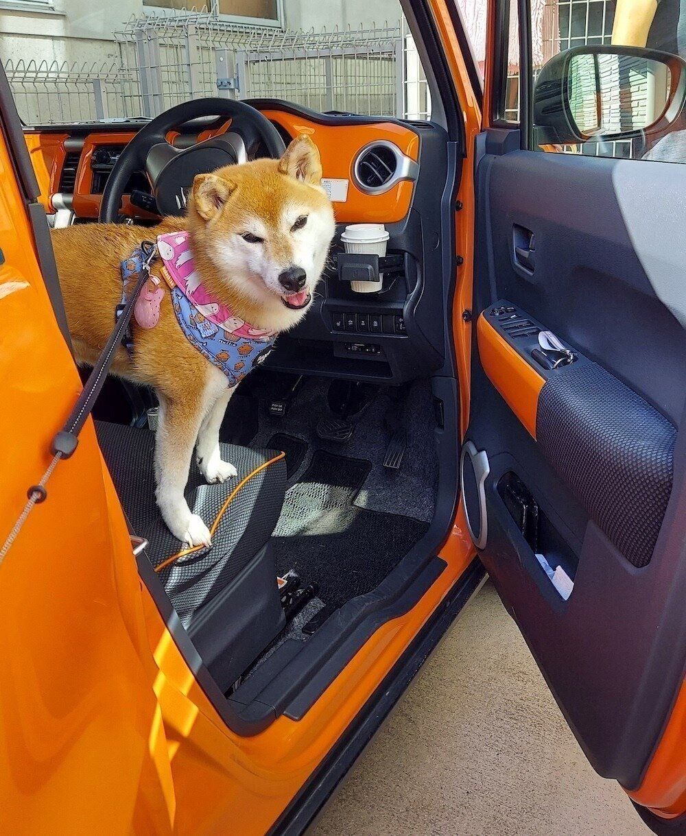 柴犬あるある、お出かけが大好きで自分で車に乗り込むとこ|連載「ここ掘れここ柴」vol.265