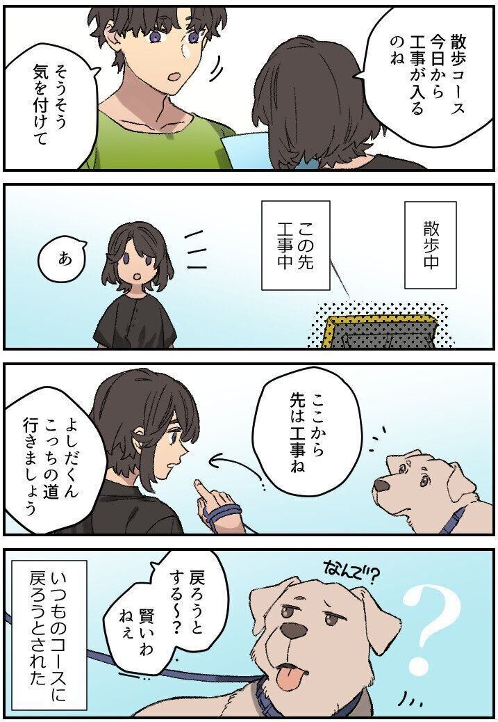 【連載】暮瀬姉弟と吉田くん 秋も遠のきすっかり冬模様になったこの頃。晴れ間の散歩が貴重になり、暖かいうちにと吉田くんを誘って出かける周一であったが外に出てみると北風が強く駆け抜けていた。一度外に出れば吉田くんが満足するまで散歩する周一だったが、今日は短くしようかなと吉田くんに声をかける。しかし、うきうきの顔で散歩に意気込んでいる吉田くんの顔に断念する周一だった。