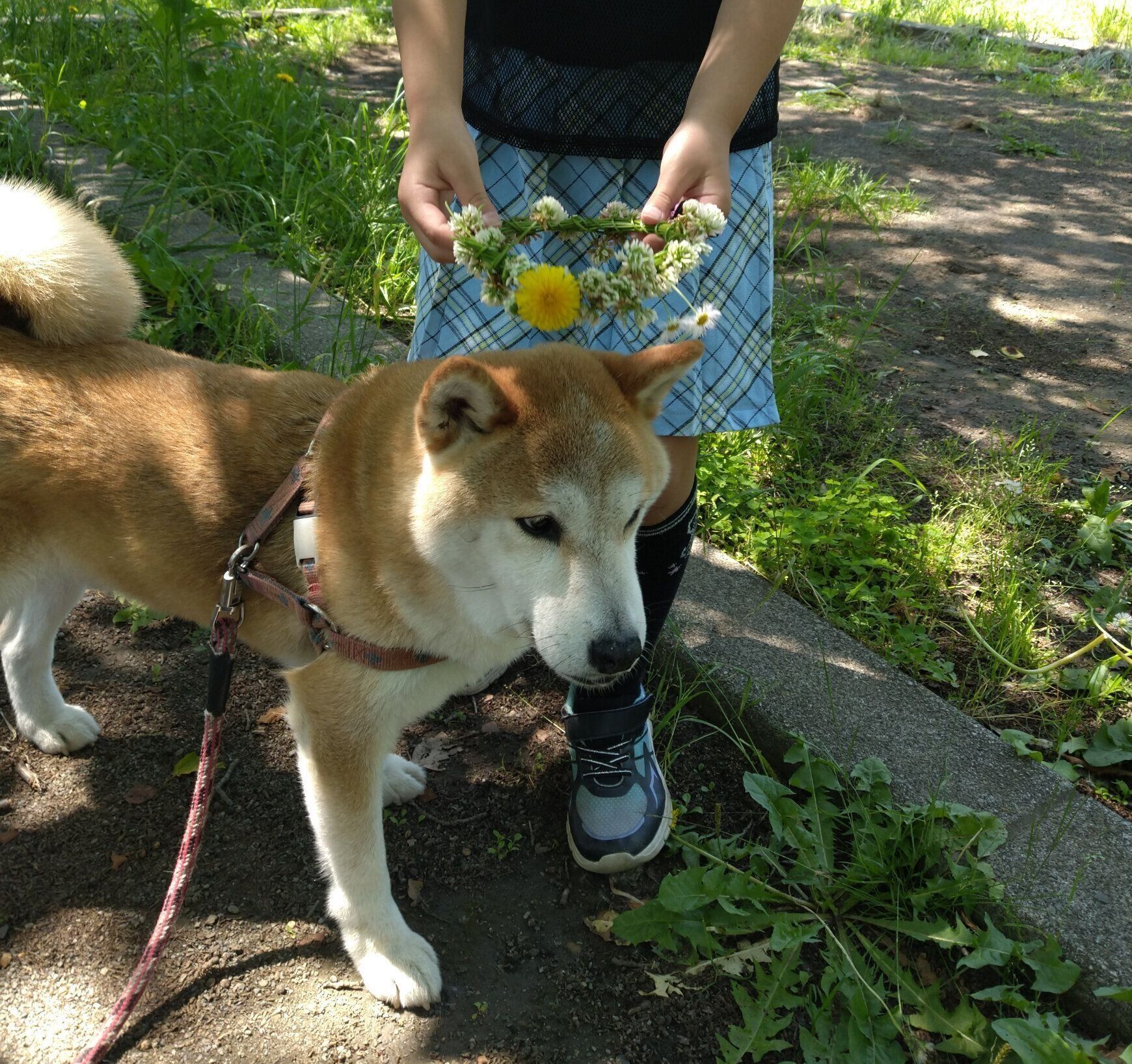 おやつと勘違い? 小さなシロツメクサと柴犬タロさん|連載「モフモフ柴とプニプニ娘」第270話