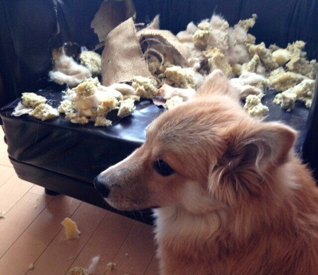 富士丸はハスキーとコリーのミックスだったので体重は30キロほどあった。散歩では「犬ぞりか!」というくらいグイグイ引っ張ったし、ちょっと留守にするとクッションやトイレシートをぐちゃぐちゃに食い破っていた。ひどいのは、一人暮らし時代から愛用していたソファーベッドも見事に破壊してくれた。