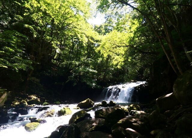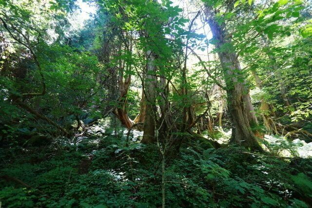 なのに少し進めば巨木がそびえる原生林のような風景になる。行けば「ちょっと入っただけでこんな世界が?」と驚くような景色が見られると思う。ちなみに今回の画像はすべて大福と蓼科大滝に行ったときのもの。