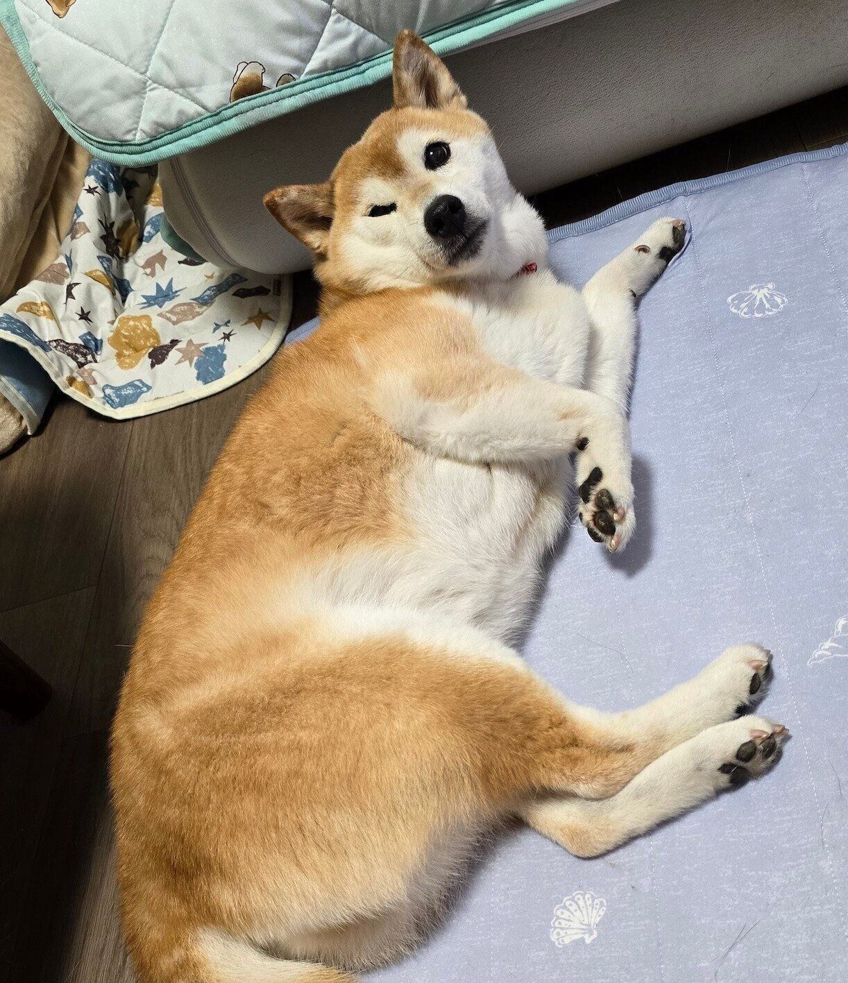 柴犬あるある、夢中な毛づくろいでバランス感覚を鍛えているとこ|連載「ここ掘れここ柴」vol.276