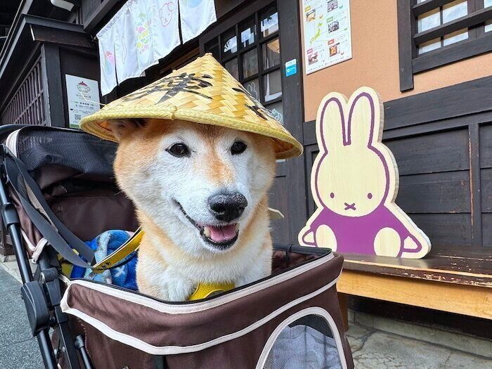 以前の笠がボロボロになってしまっていたので新調することに。購入したお店の女性も以前に柴犬を飼っていたそうで、わんこ談義に花が咲きました。こんな出会いも旅の楽しみですね。