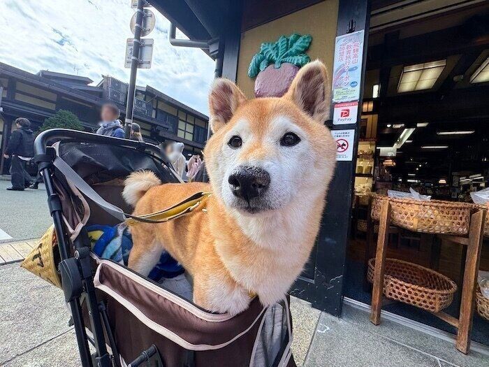 行き交う観光客のみなさんに「かわいい!」と声をかけてもらううちに、ますます元気になるマロたん。人間大好きな性格で本当に助かります。インバウンドのみなさんにも柴犬は大人気で、たくさんの記念写真に収まりました。