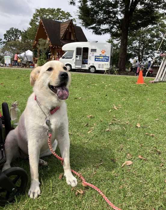 「ペット専用レンタルキャンピングカーPet-RV 平日2日間」をゲットされたお客さまは「愛犬と一緒に旅行をしています。キャンピングカーは初めてなのでとても嬉しいです!」とのこと!