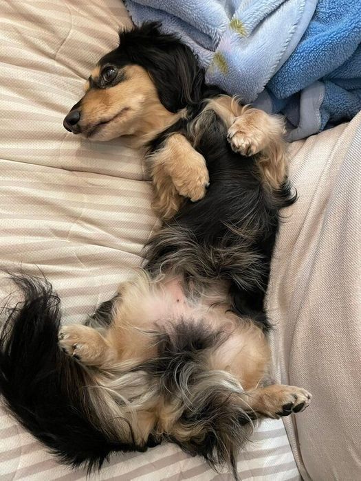 「ふだんはそっけないのに」体調不良のお父さんに寄り添うダックス犬 優しい姿に心が温まる!
