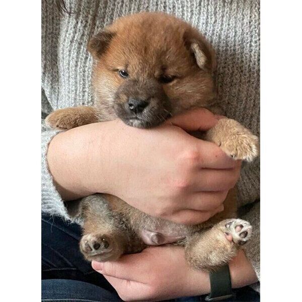 飼い主の両手に包まれてスヤスヤ眠るあどけない柴の子犬→4年後、「貫禄たっぷりな姿」で眠るコに成長!