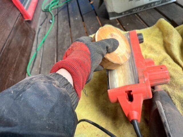 とりあえず今は、原木の隅っこを5センチくらいに切って、大福のゴハン台を作ろうとしている。現実逃避ではないよ。