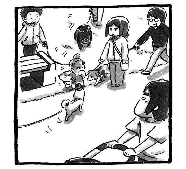 平気でお庭へ飛び出したあられちゃんに対し、葛藤しているがぼくん。