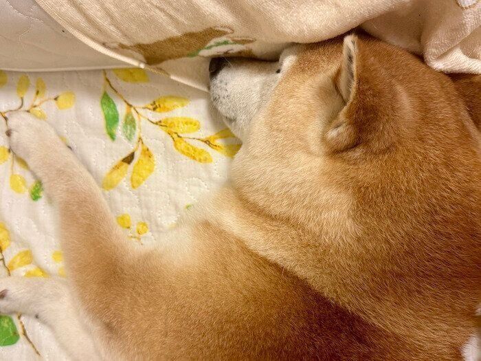 遊び疲れて突然“電池切れ”してしまった柴の子犬・いぶきちゃん。先代犬との別れから生まれた新しいご縁のもと、1才目前の現在は優しくフレンドリーなコに成長しています。