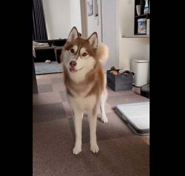 可愛いリアクションをしていたハスキー子犬。成長した現在の姿とは……?