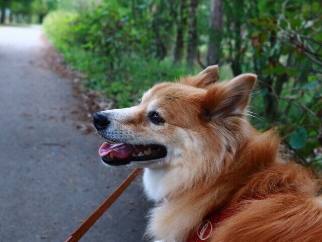 初めての場所を散歩するだけで、大福はニコニコだった。曇りだったが、その方が気温が上がらずありがたい。何もないところを、ただ景色を眺めながら歩くだけ。それで大福は大満足らしい。