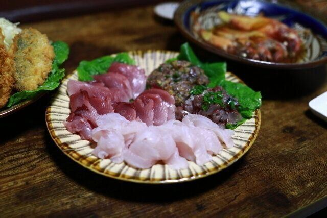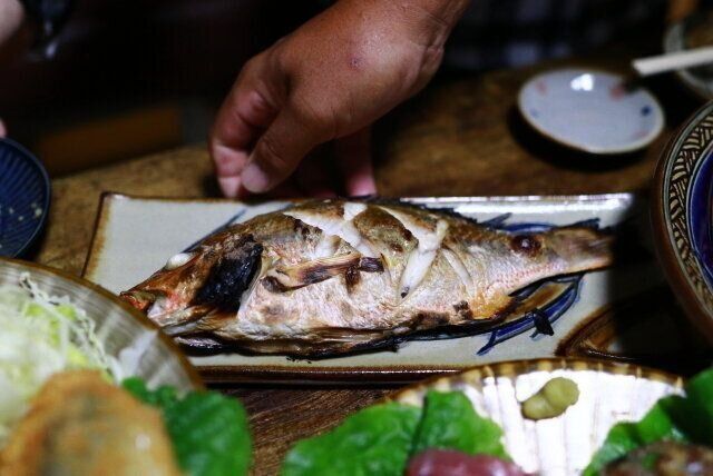 そして大福と海辺を散歩して、夜、魚が食卓に並んだ。なぜか釣り上げた以外にも魚種が増えており、刺し身、塩焼き、煮付け、アジフライ、アラ汁とフルコースが出てきた。素晴らしい。持つべきものは料理上手な友人だ。