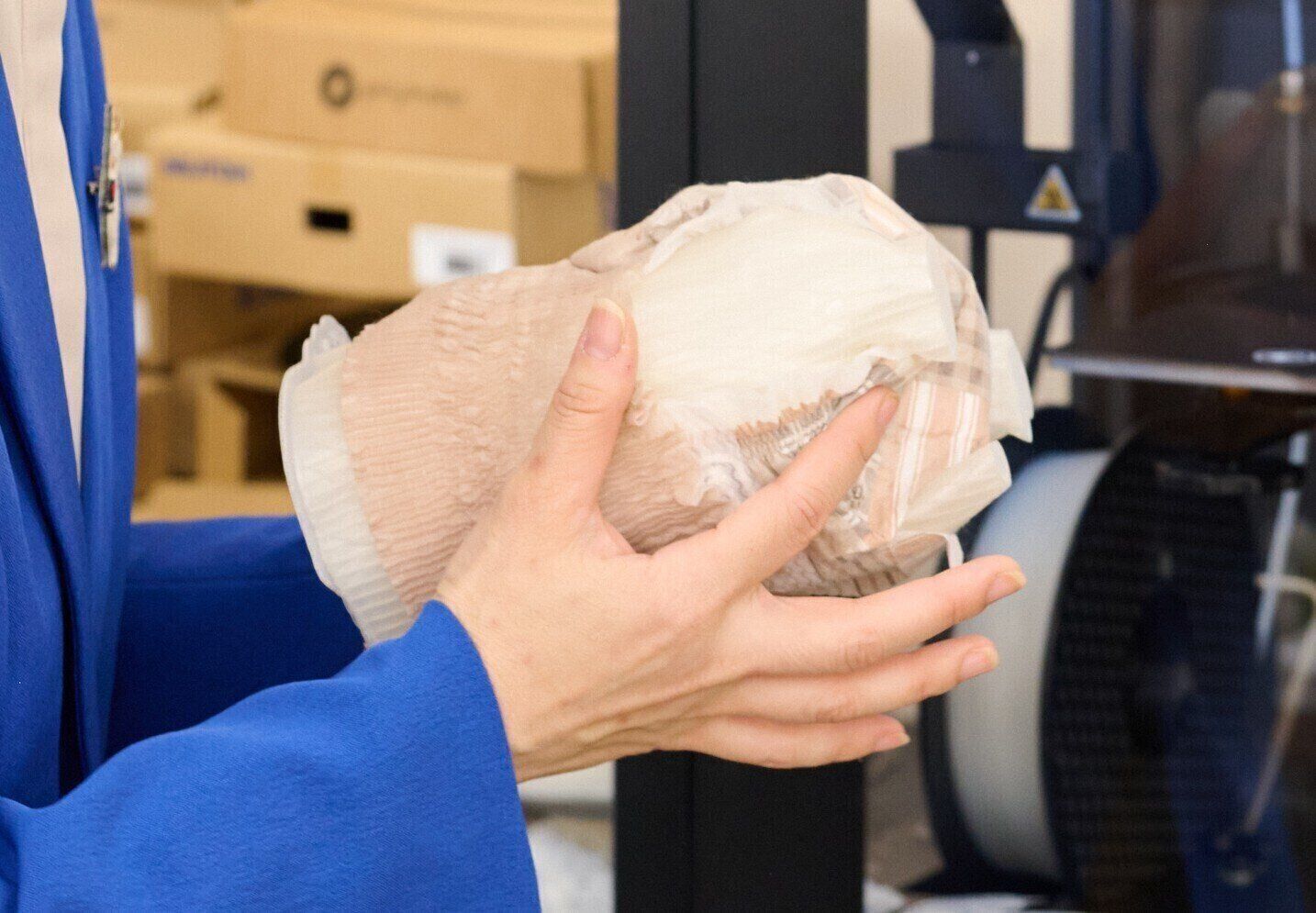 柿崎先生「先ほどもお話ししたように、犬は腰骨で引っかかる部分が少ないため、おむつが落ちやすい構造なんです。そこで、3D模型を使って、どこがズレやすいのか立体的に確かめながら改良していきました。3D模型は最近導入したんですが、サイズを変えたり姿勢を調整したりしながら比較できるので、開発のスピードも精度も格段に上がりました」