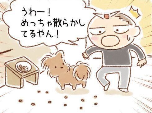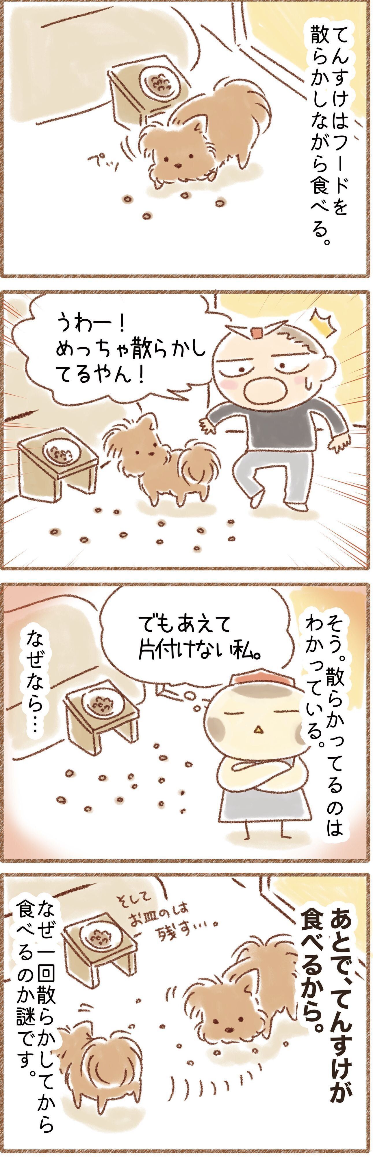 片付け要らずの散らかしタイプ?結局食べる…愛犬の謎ルーティン|連載「こぐま犬てんすけ」vol.304