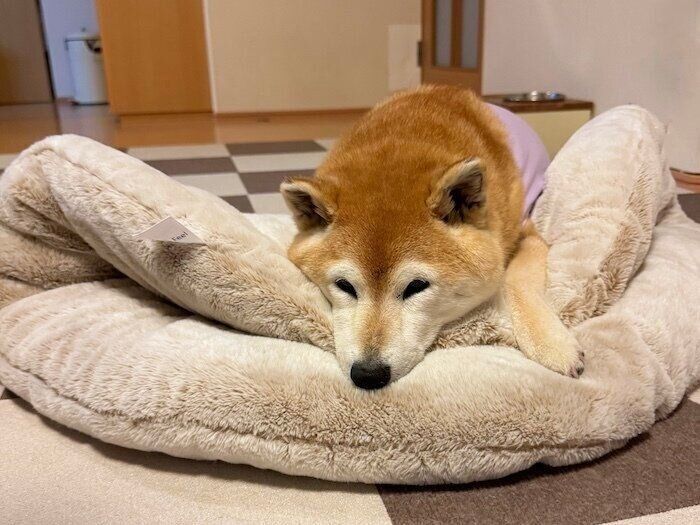 四六時中甘えていた保護犬の子犬・咲季ちゃんが7年で大変身。今では、飼い主さんの様子を察知して甘えるおりこうさんに。「宝物でもあり、空気のような存在」と語ります。
