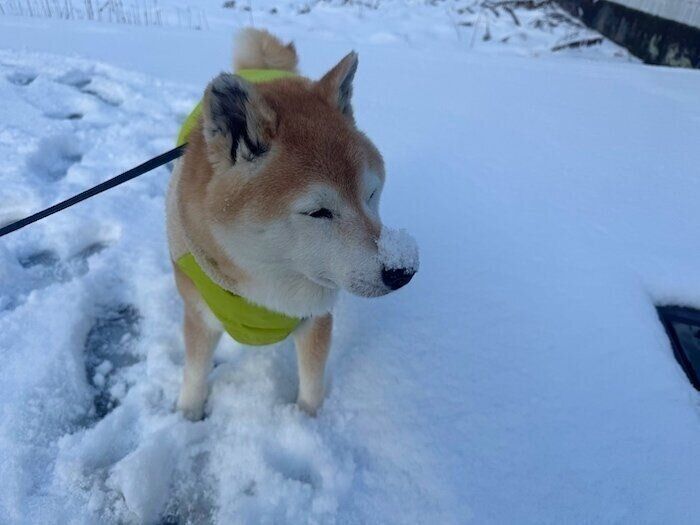 15歳になって慎重になった柴犬マロたん、それでもやっぱり雪が好き