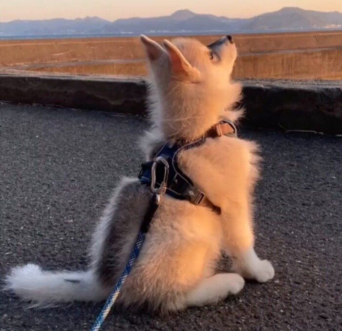 お迎え翌日から無邪気な姿を見せたハスキーの子犬。当時は垂れていた両耳に、半月ほどで変化が現れたようです。