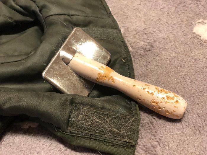 パピー時代のマロたんがかじっておもちゃにしたせいでボロボロですが、面ファスナー掃除のために未だに現役。