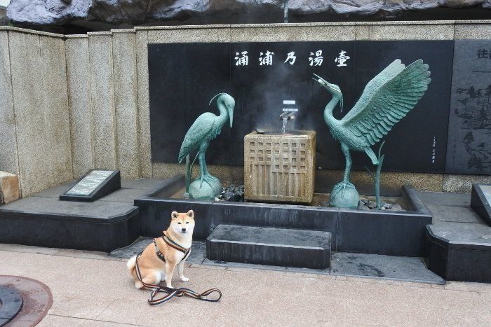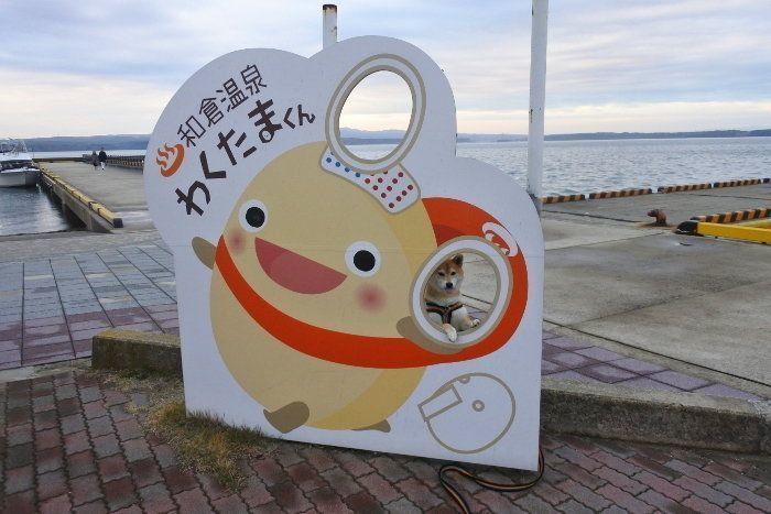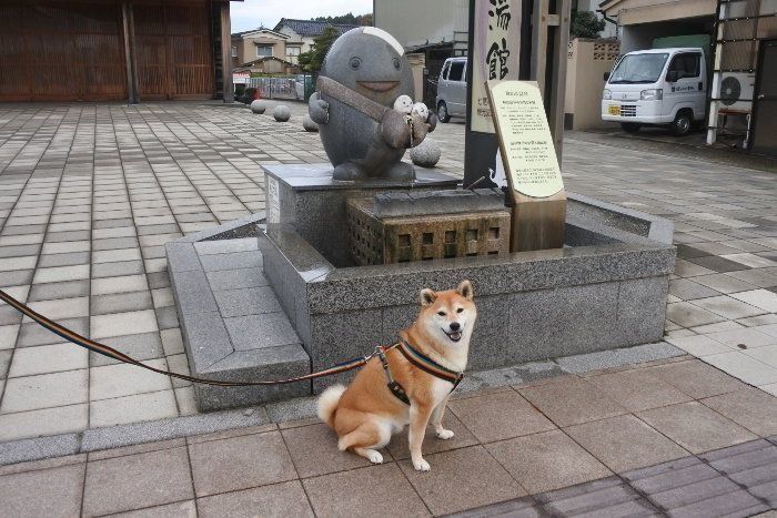 お次は、和倉温泉にやって来ました。総湯前のわくたまくんにご挨拶。昨年は雨でマロたんの顔が冴えませんでしたが、今年はわくたまくんに負けない笑顔で撮影できました。
