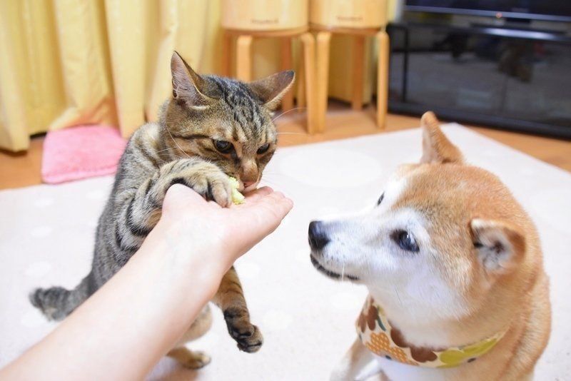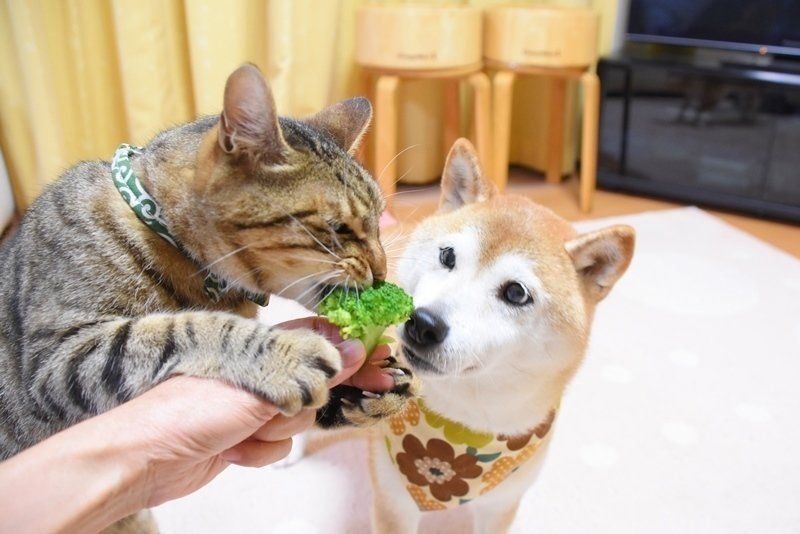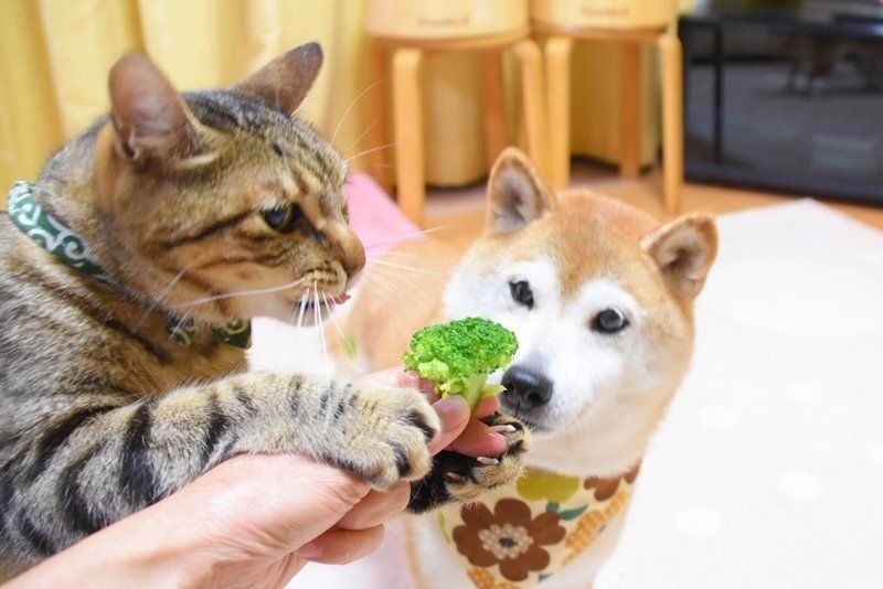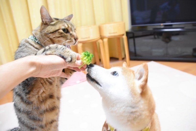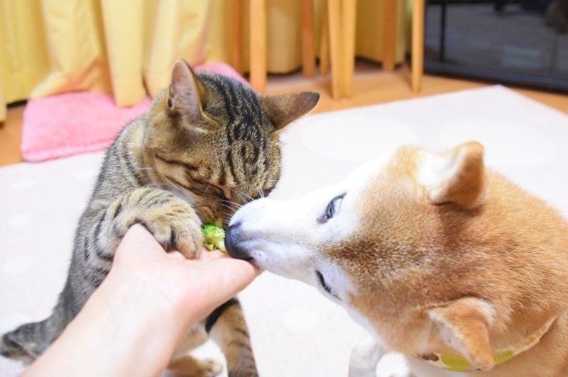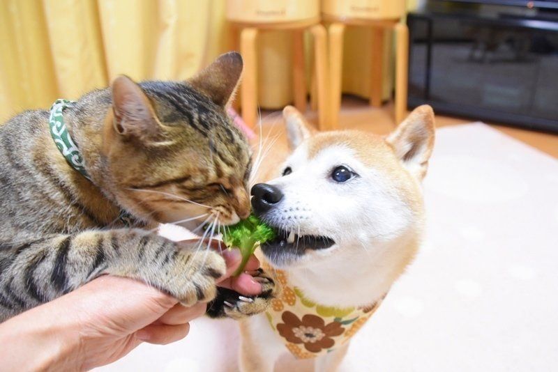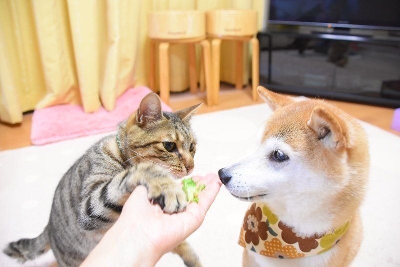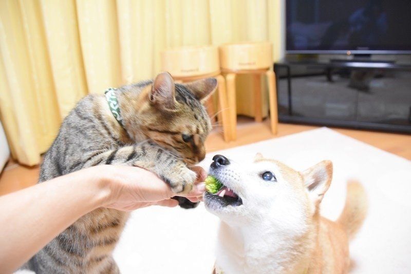 ブロッコリー好きの犬猫きょうだい。かぼちゃんの目が輝くおやつの時間