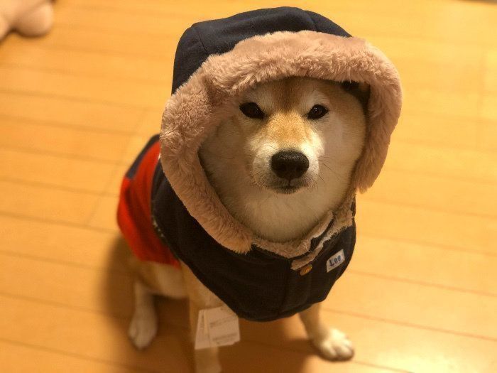 こちらが母からマロたんへのバースデープレゼント兼お年玉です。内側がボアなので寒がりなマロたんにピッタリ。フードの取り外しができるのもポイント高し。