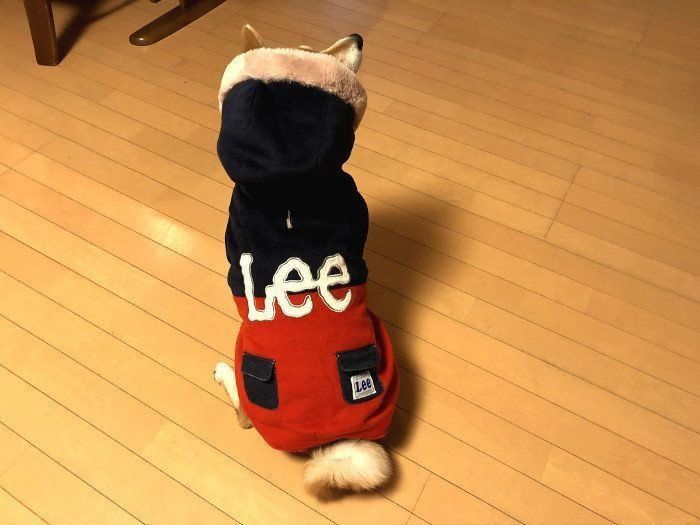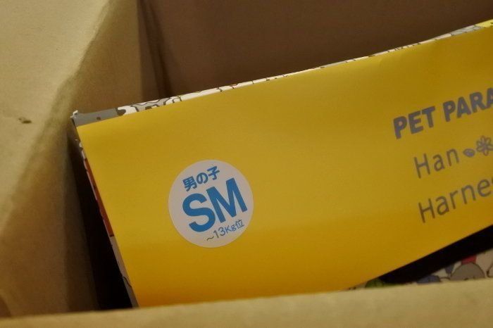 ただね、心配なのはサイズ。パツンパツンだったらどうしよう問題。13kgまでのわんこ用なんだから着られないわけないのですが、ここのメーカーは商品によって小さめなことがあるのです。どきどき。