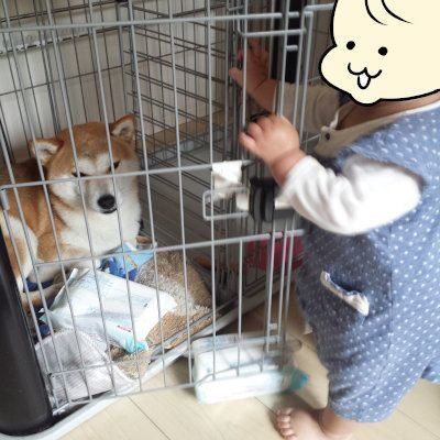 イタズラ娘をベビーサークルに、するとタロさんは…